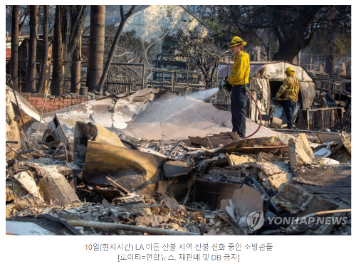 2. 기상 여건 개선 : 캘리포니아 지역 기온 상승과 강풍 완화로 인해 진화 작업이 다소 수월해졌으나, 여전히 대규모 인력과 장비가 투입되고 있습니다.